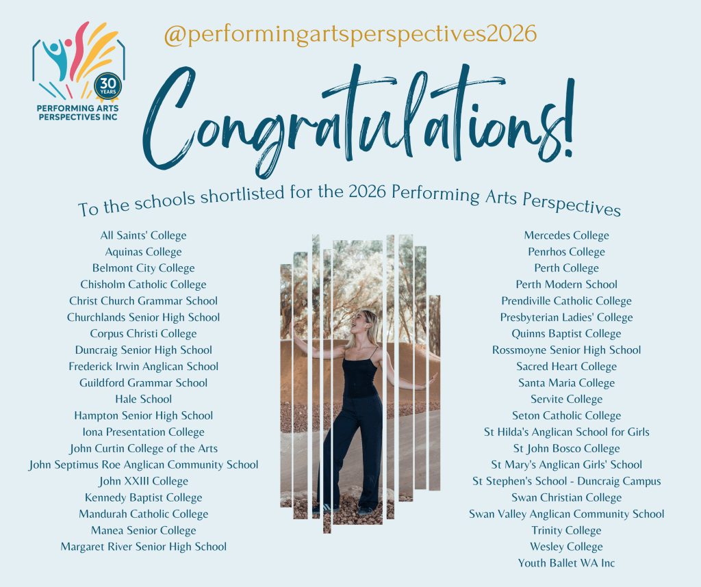 A big congratulations to the schools listed below, with performers who’ve been shortlisted for the 2026 Performing Arts Perspectives.